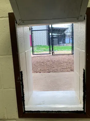 $37/night ($32/night for each additional dog in same run)•All the features of the indoor runs, plus a dog door to an outside shaded concrete extension•We have 2 double-sized runs available for multi pet families•Dimensions: 3x6 indoor portion and 6x13.8 outdoor portion•Dimensions of the 2 larger kennels: 6x13.5 indoor portion and 6x13.5 outdoor portion. Includes metal dog door