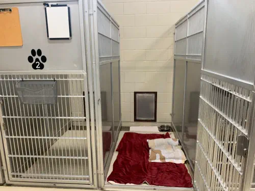 •Climate controlled facility•Cot with bedding•Food, water and medication as prescribed by you•Private outside time in fenced exercise yard 2-3 times per day•Owner-provided medications administered at no charge•Dimensions: 3x6